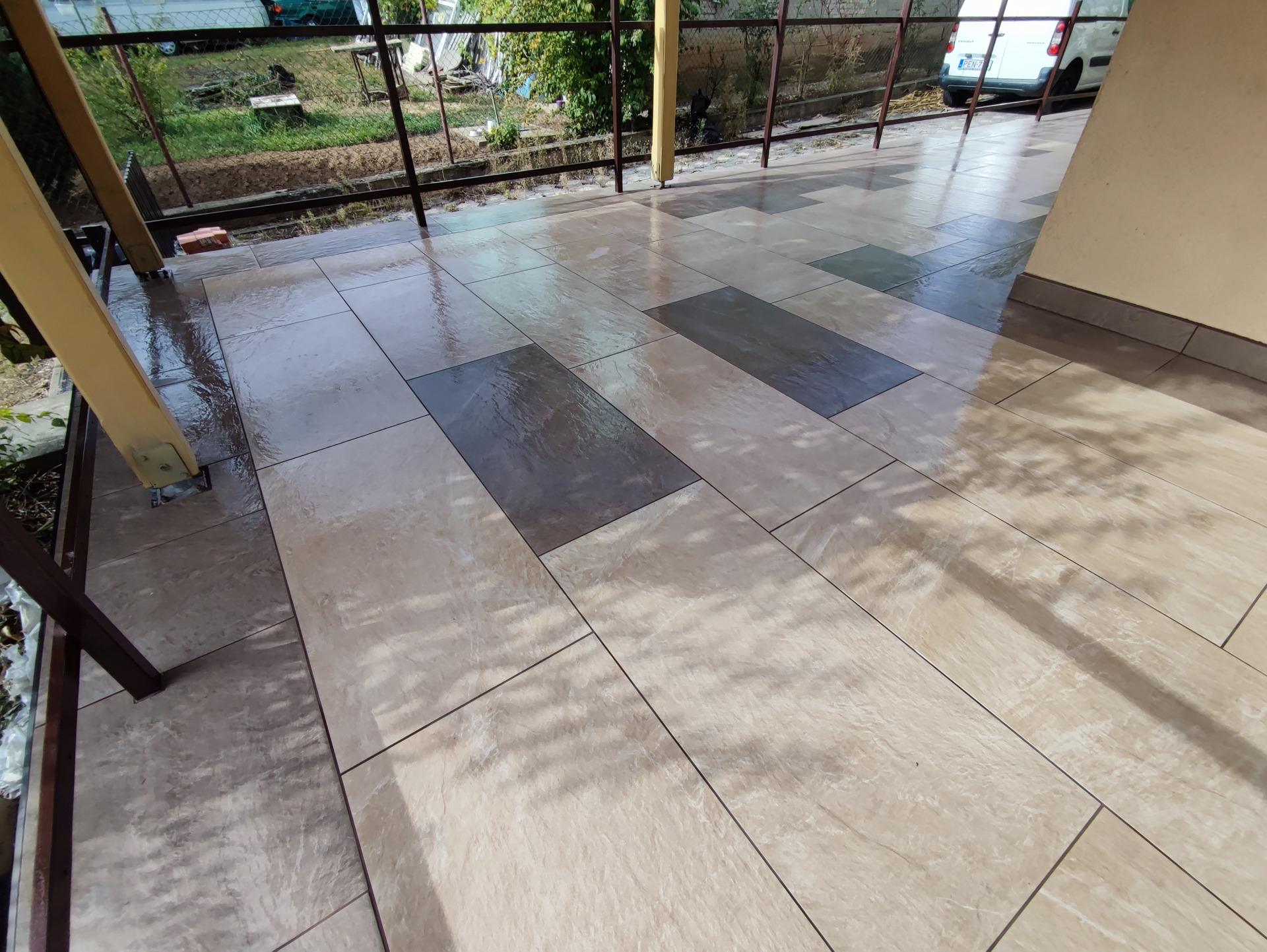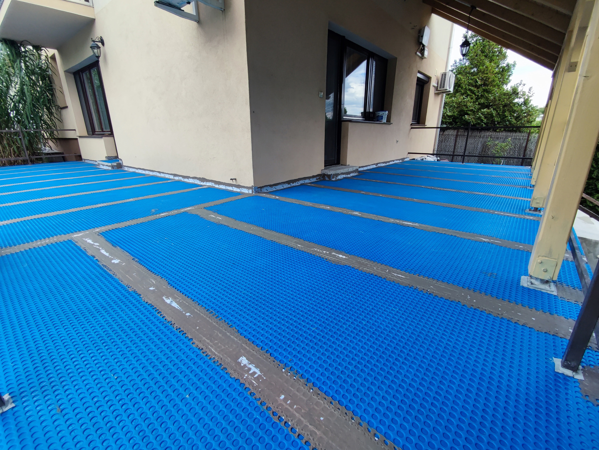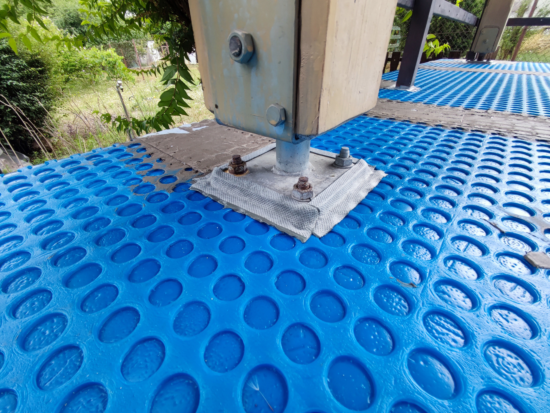 Elkészült a 2025-ös év utolsó kinti munkája. A korlát lábak és az előtetőt tartó faoszlopok talpvasai körüli vízzárás fontos részét képezte a kivitelezésnek.